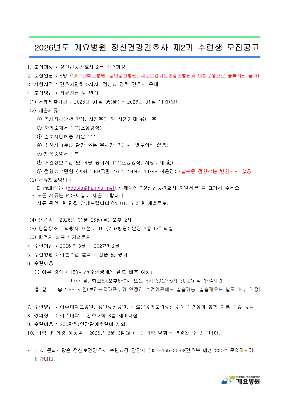 2026³â °è¿äº´¿ø Á¤½Å°Ç°°£È£»ç ¼ö·Ã¸ðÁý°ø°í